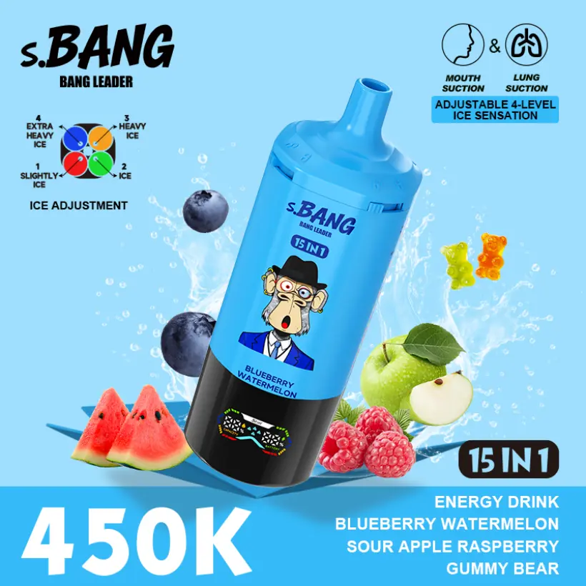 Bang Leader 450K Puffs 15 in 1 Einweg E Zigarette mit 12 Geschmacksrichtungen, 850mAh Akku, 1.0Ω Mesh Coil, Type-C Laden. Großhandel 10pcs/box, Multi Geschmack Vape, kostenloser Versand, extrem langlebig.