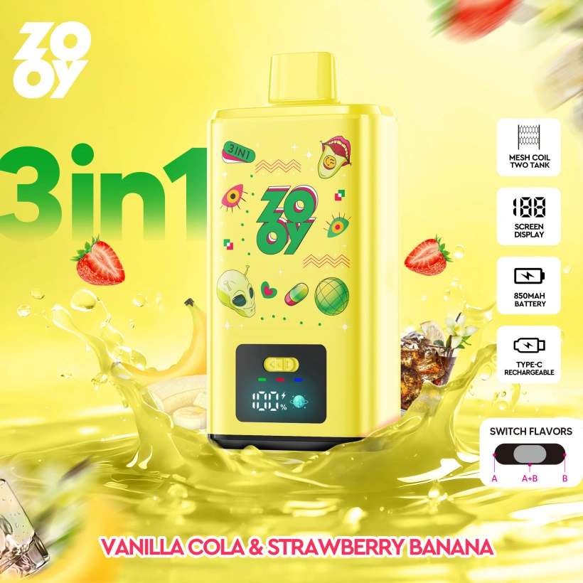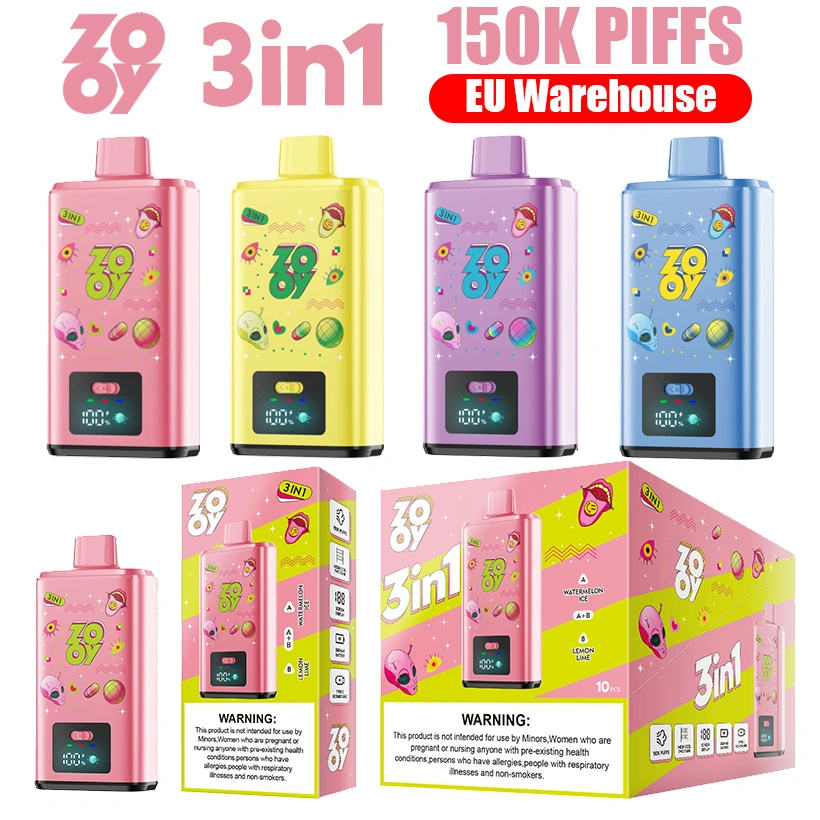 ZOOY 150K Puffs 150000 3 in 1 Einweg E-Zigarette mit Dreifachgeschmack, 850mAh Akku, doppelte 1.0Ω Mesh-Coil, Type-C Laden, intelligentes Display, 12 Geschmacksrichtungen. EU-Lager, Großhandel.